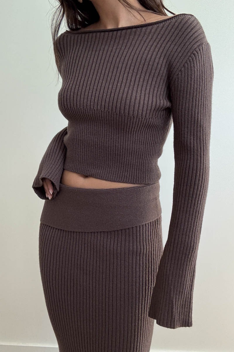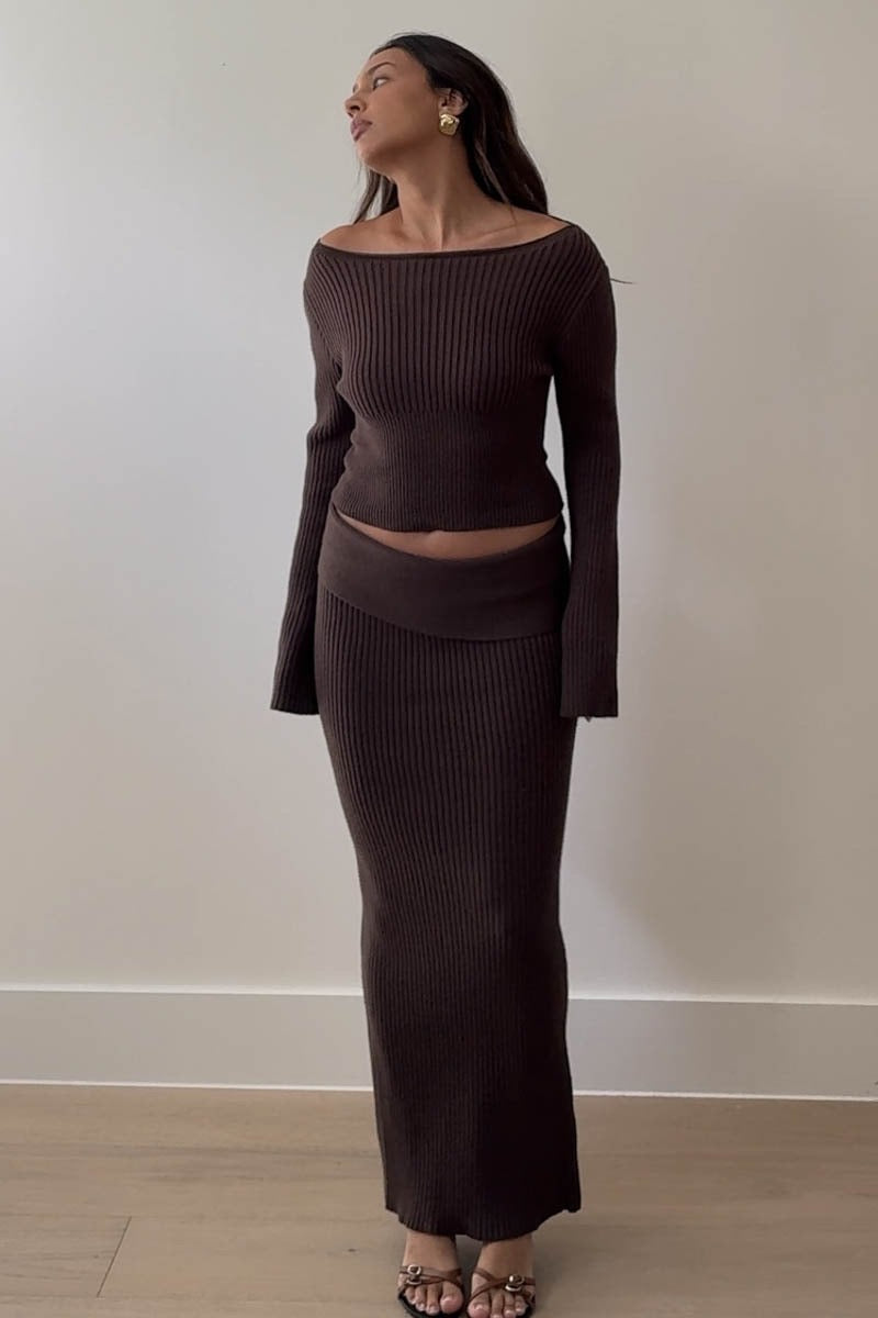 2 piece ribbed knit top w/ maxi skirt set.
