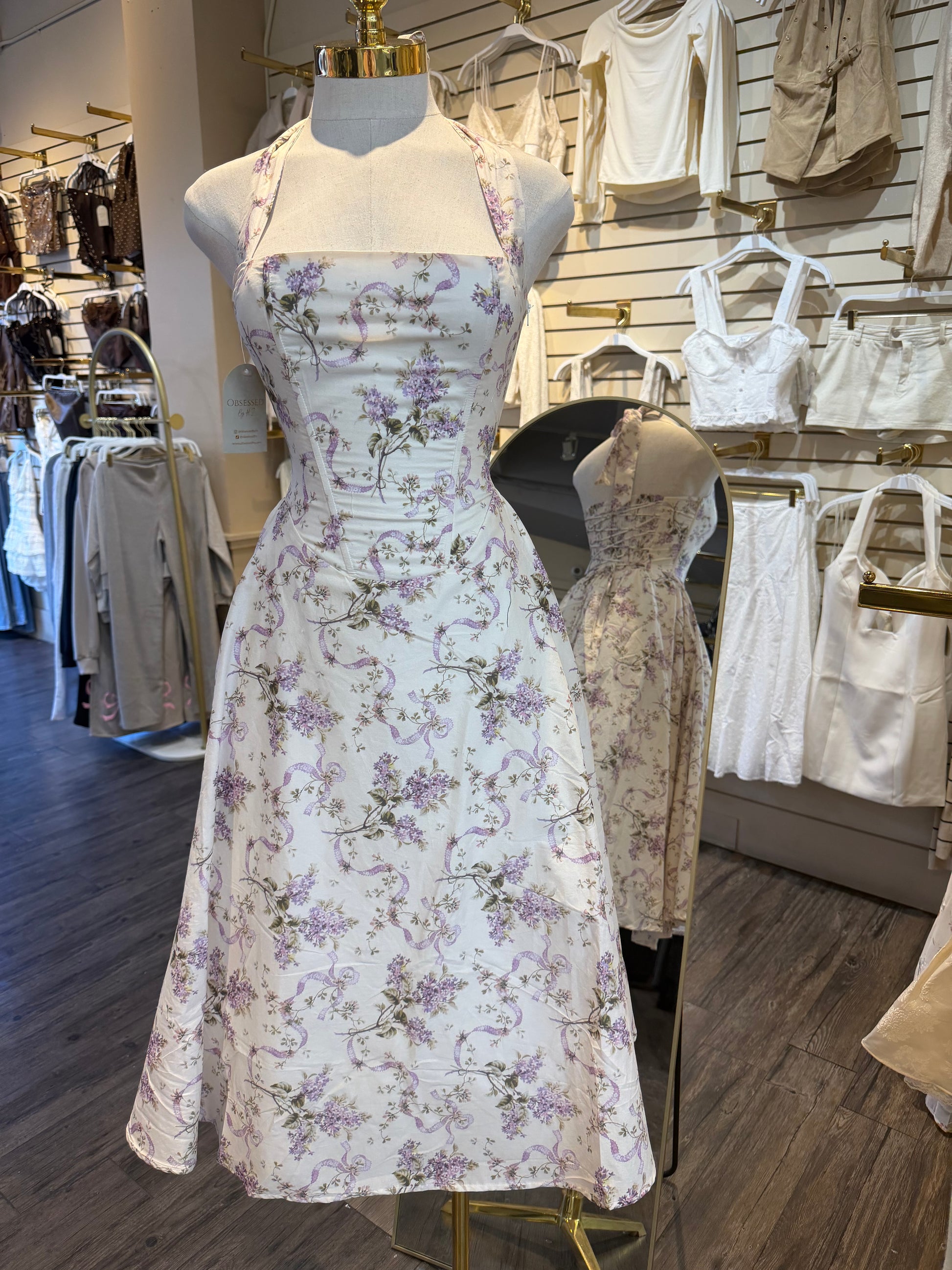 Floral ribbon midi dress